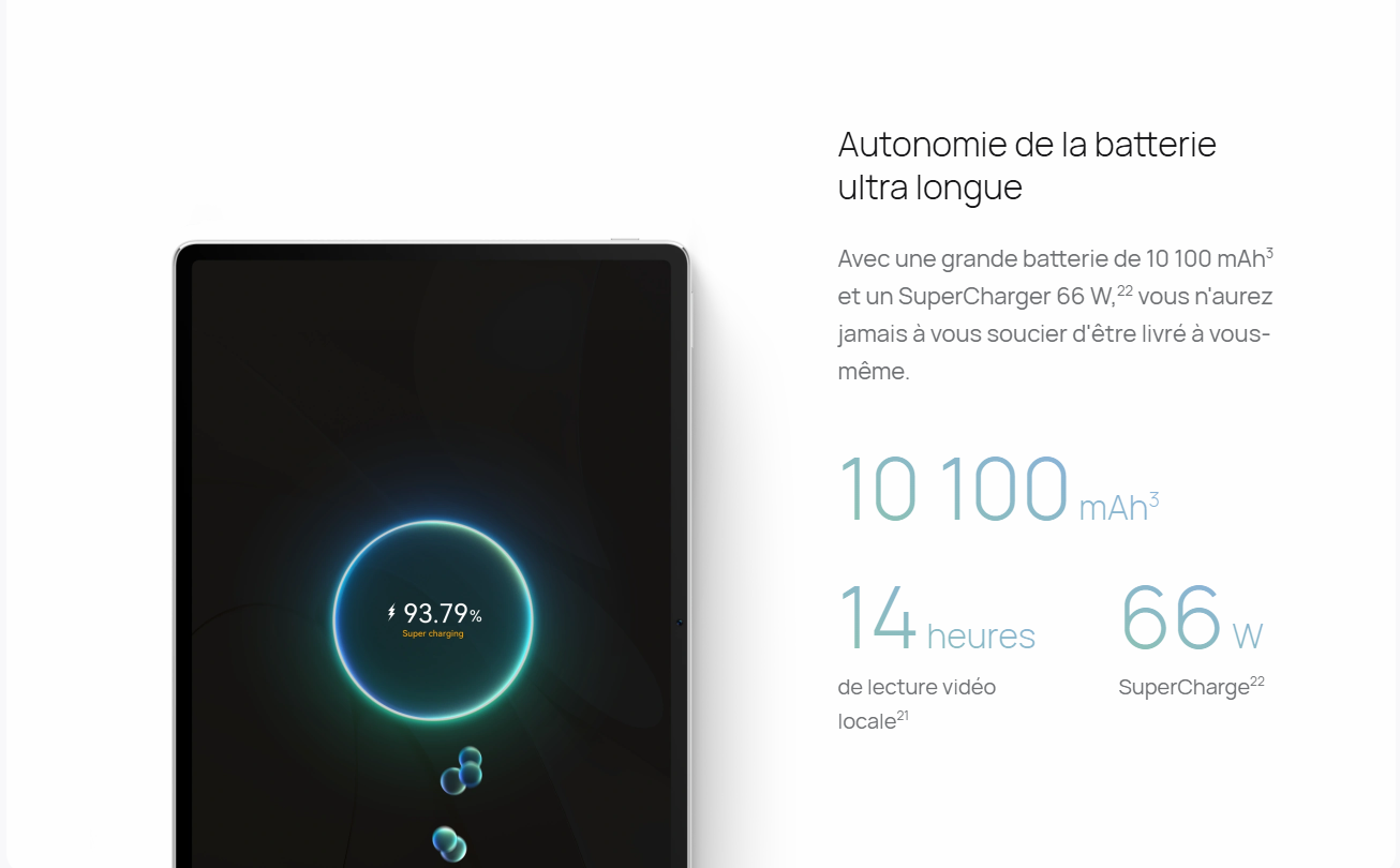 - Batterie : 10 100 mAh (capacité typique)