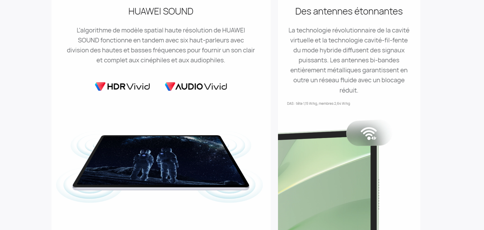 La cavité unique de l’antenne du haut-parleur 2-en-1 de la tablette maximise l’espace tout en améliorant les performances audio et du signal. La chambre à vide en acier inoxydable ultra-légère ne mesure que 0,28 mm d’épaisseur à l’endroit le plus fin et plus de 20 000 mm² de graphite à conductivité thermique sont utilisés à l’intérieur de la tablette pour assurer un refroidissement optimal.