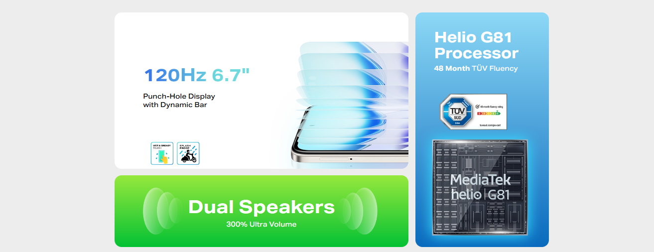 - · Helio G81 Processor & 48-Month Performance TÜV Fluency