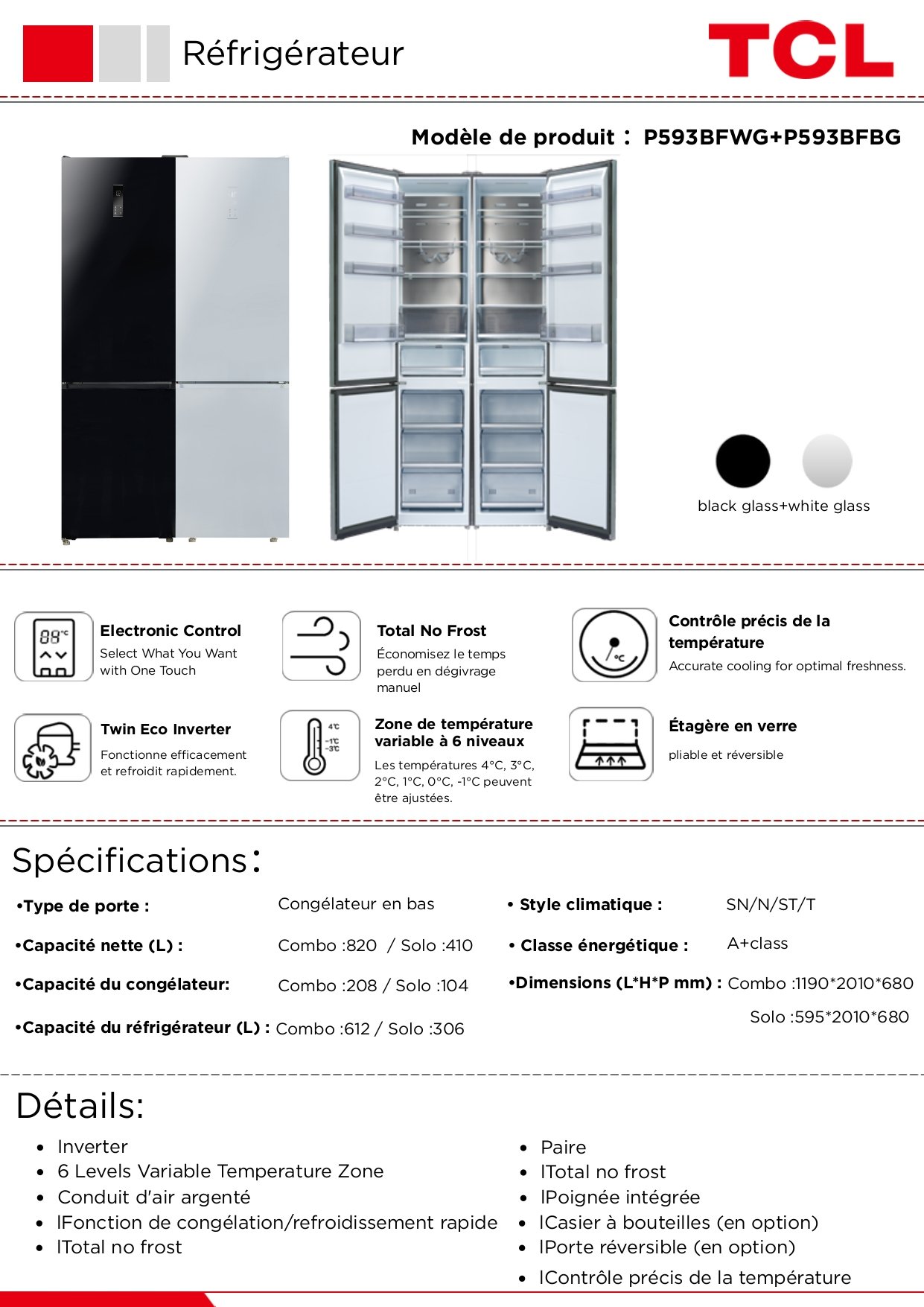 Réfrigérateur TCL Combiné 410L P593BFWG Details :