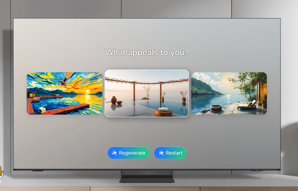Choisissez des mots-clés pour l’ambiance que vous souhaitez, et laissez l’IA faire des merveilles. Votre TV générera
