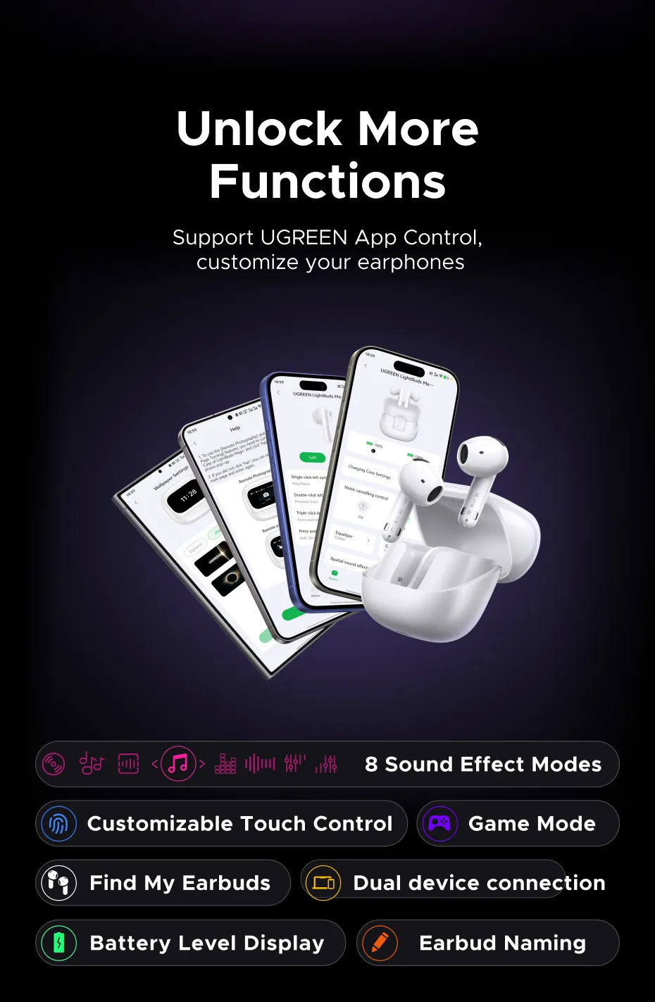 Ugreen LightBuds Magic Earphone Bluetooth 6.0 ANC ENC Active Noise Cancellation