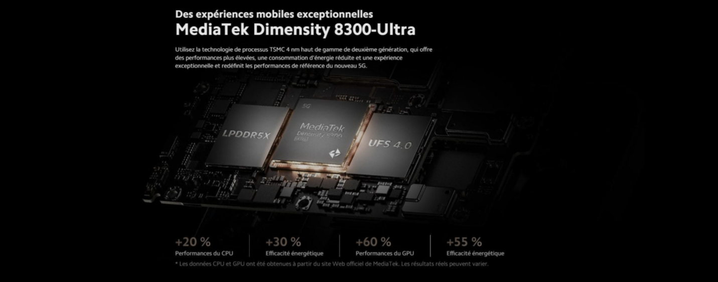 - CPU: MediaTek Dimensity 8300-Ultra(4 nm)